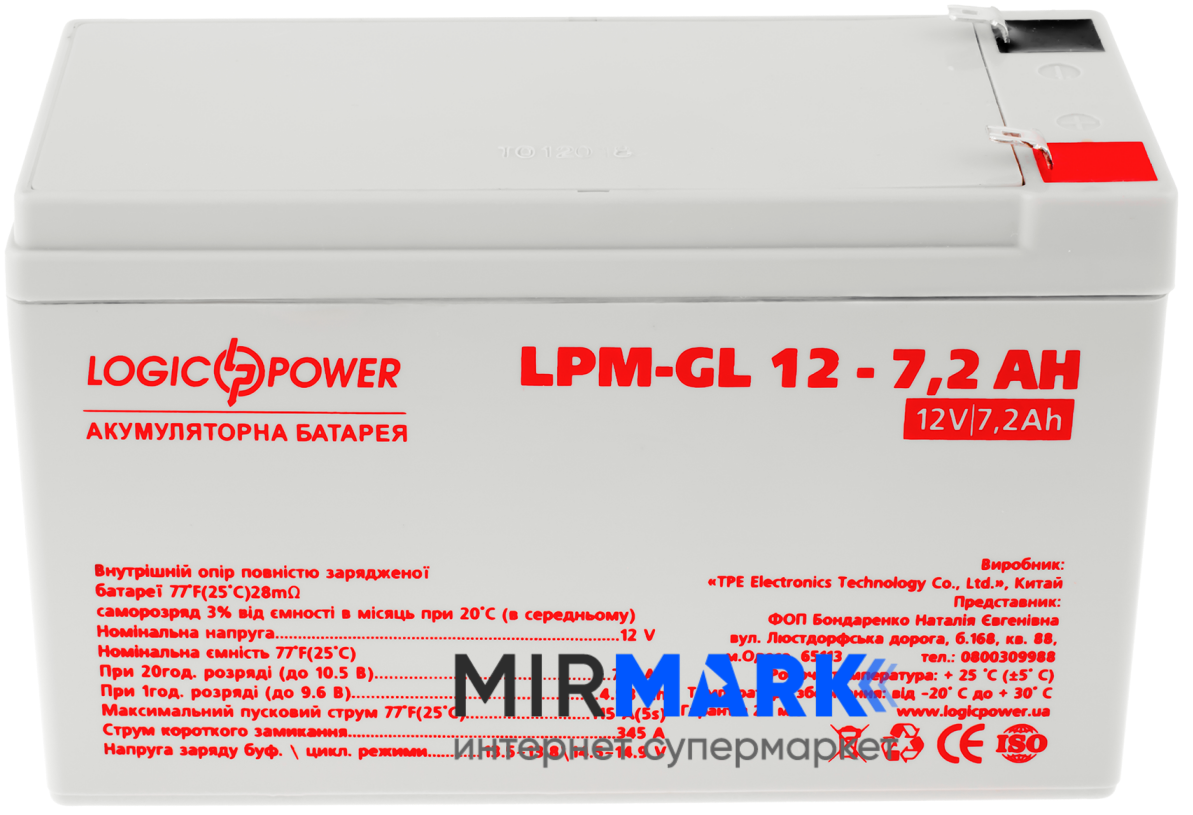 Обзор характеристик на Аккумулятор гелевый Logicpower LPM-GL 12 - 7,2 AH: