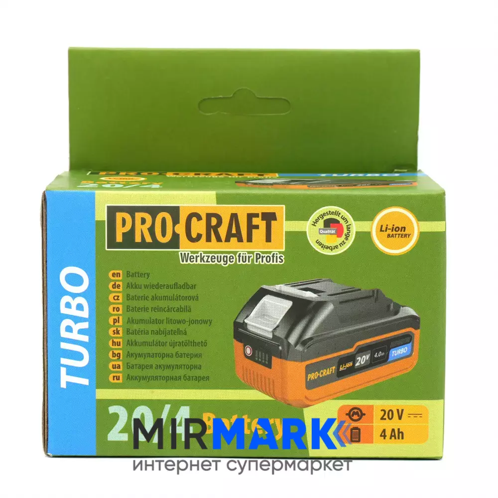 Описание на Аккумуляторная батарея ProCraft 20/4 TURBO 20V 4Ah литий-ионна (Li-ion):