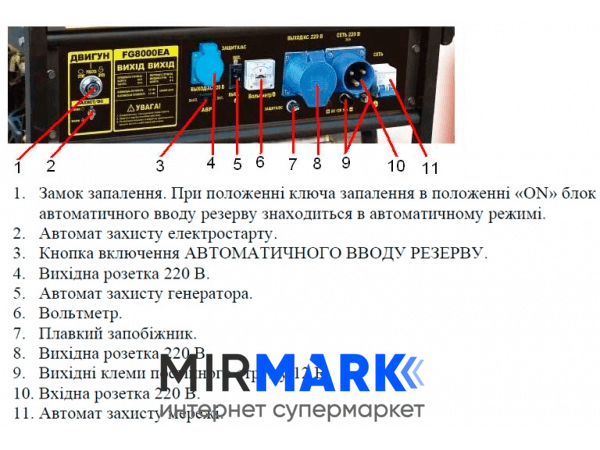 Генератор Forte FG6500EA - бензиновая мощная электростанция (номиналом 5,0 кВт) с автостартом для бытового применения, которая идеальна для индивидуального электропитания строительных инструментов и бытовых приборов (циркулярная пила, перфоратор, электрочайник, стиральная машина, телевизор, компьютер, промышленный фен и проч). Как и другие модели этой линейки, Forte FG6500EA оснащен евророзеткой, вольтметром, выходом 12В по постоянному току.