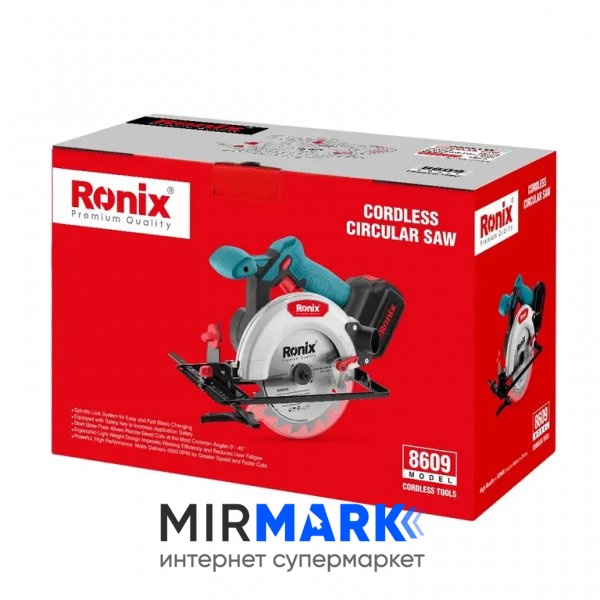 Обзор характеристик на Циркулярная пила Ronix 8609 20Вт, 165мм, 4Ач x 2: