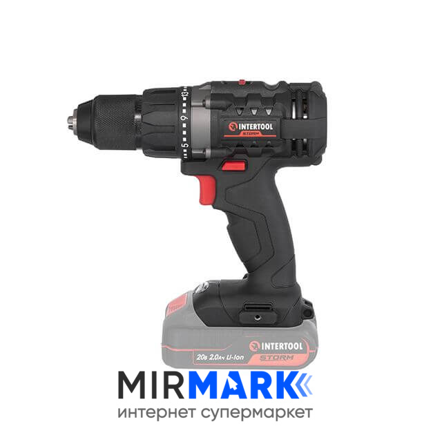 Описание на Дрель-шуруповерт аккумуляторная INTERTOOL WT-9351 20 В, 50 Nm, 0-450/0-1700 об/мин, 2-13 мм, без ЗУ и АКБ: