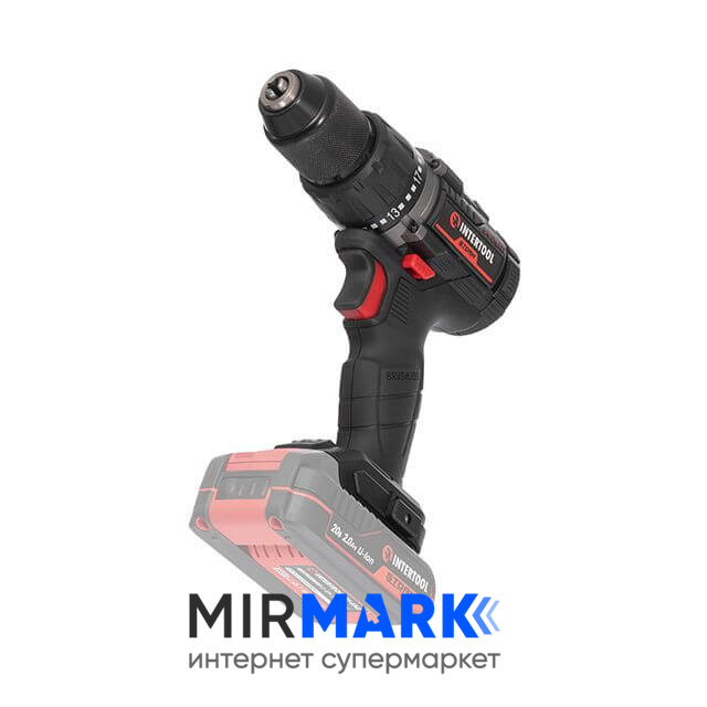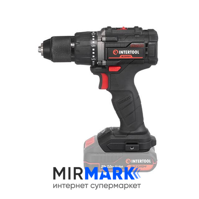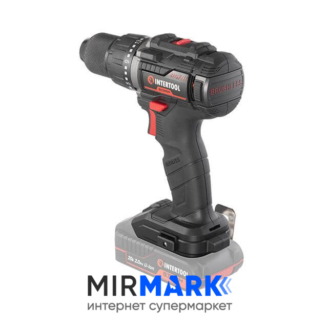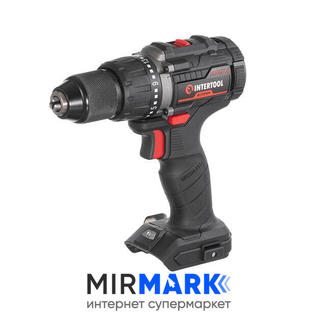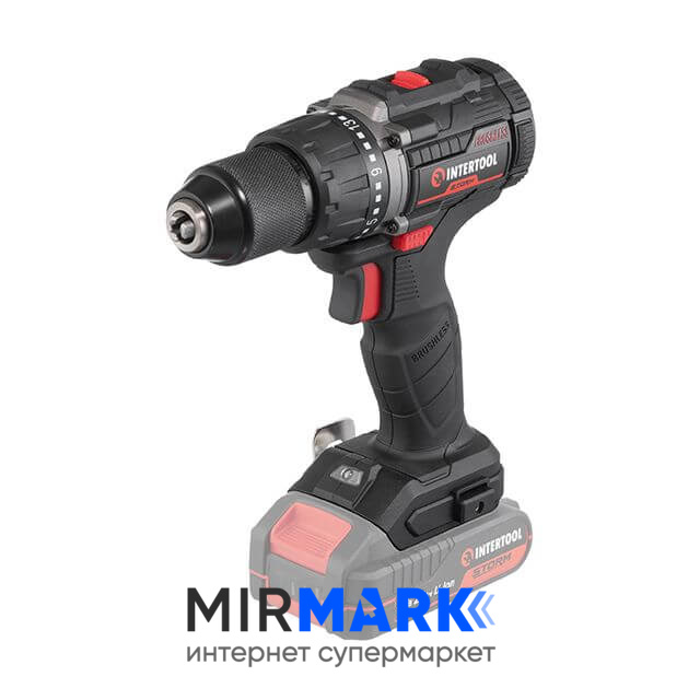 Дрель-шуруповерт аккумуляторная INTERTOOL WT-9360 с бесщеточным двигателем 20 В, 60 Nm, 0-500/0-2000 об/мин, 2-13 мм, без ЗУ и АКБ