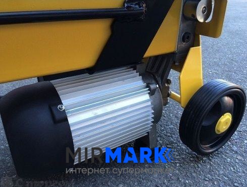 Для приведения агрегата в действие достаточно подсоединить его к обычной розетке 220 В. Он укомплектован мощным электрическим двигателем. Благодаря его экологичности (отсутствие вредных выбросов) и небольшому уровню шума во время работы, устройство можно использовать в закрытых помещениях. Его рабочее давление составляет 5 т., а обработке подлежат любые сорта древесины.
