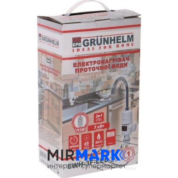 Электрический проточный водонагреватель Grunhelm EWH-3F-LED