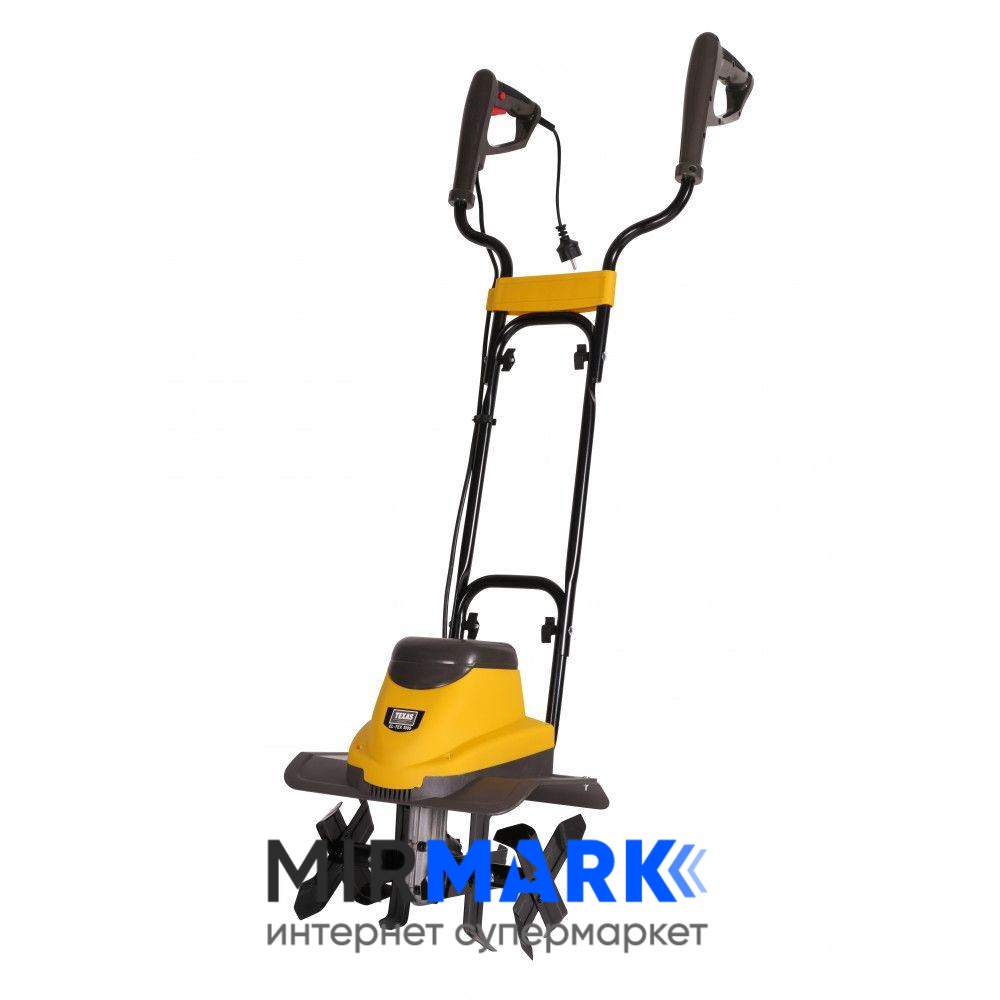 - Электрический культиватор TEXAS El-Tex 1000 — это сетевая модель, подключение которой осуществляется к однофазной сети на 220В. Поэтому разумно заранее продумать о свободном доступе к розетке, чтобы не возникло проблем во время обработки почвы.