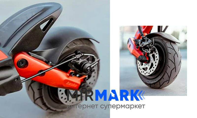 - светодиодная фара, мощные двойные двигатели, синосуидальный контроллер, NFC-замок