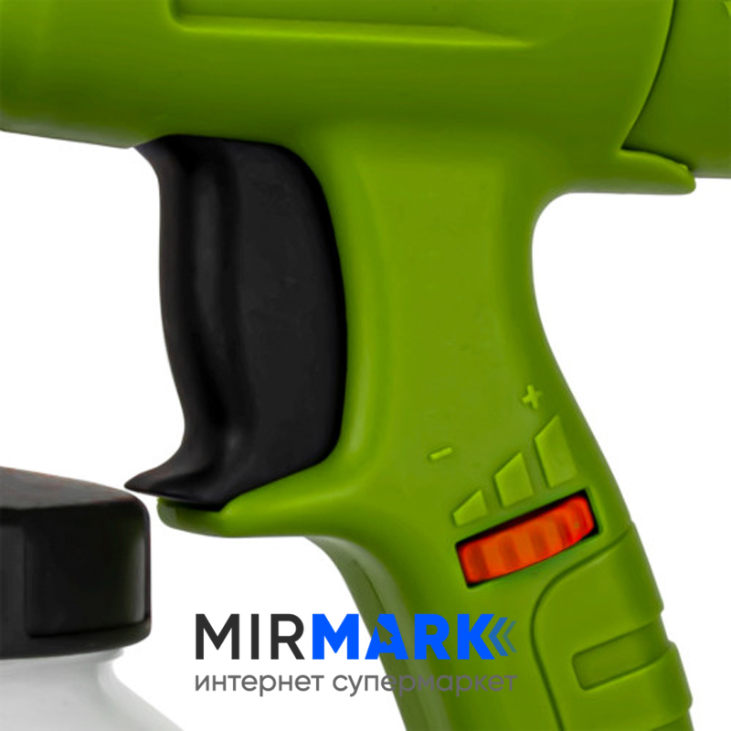 Аппарат укомплектован электромотором мощностью 700 Ватт, он полностью автономен и не требует наличия дополнительного оборудования (в том числе компрессора). Для начала работы его нужно подключить к 1-фазной электросети напряжением 220 Вольт. При расходе краски 1000 мл за минуту удаётся выполнять большие объемы работ с высоким качеством и точностью. Регулировка подачи красящего раствора позволяет максимально точно настраивать агрегат под тип обрабатываемого материала и получать оптимальную толщину слоя. При использовании электроустройства появление потёков и иных дефектов, как в работе с кисточкой или валиком, исключено.