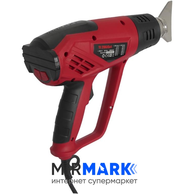 Технический фен Виталс-Мастер Tf 206JSct – надёжный, многофункциональный и долговечный электроинструмент для бесконтактного нагревания различных поверхностей путём обдувания потоком воздуха заданной температуры. Используется для сушки гипсовых изделий, снятия клея и лакокрасочных покрытий, пайки окантовок из ПВХ, размораживания водопроводных труб, дезинфекции, лужения, др. Точность регулирования функционального режима обеспечивает LED индикатор температуры на задней части корпуса.