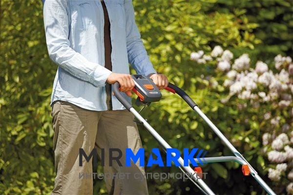 Газонокосилка GARDENA PowerMax 34E – эта универсальная модель обладает продуктивным двигателем. Самым большим плюсом данного инструмента является то, что он практичный, легкий, полностью безвредный для окружающей среды. Двигатель экономно потребляет электричество, готов работать достаточно много часов подряд. Вы можете не волноваться о поломке или возгорании двигателя, так как он имеет защиту. Небольшой вес благодаря тому, что косилка не самоходная. Вибрации практически не ощущаются, поэтому работать приятно даже достаточно длительное время. Старт легкий и мягкий, Вам нужно лишь нажать большую кнопку на рукоятке. Складывающиеся рукоятки позволяют экономить место при транспортировке или хранении. Также для большего Вашего комфорта ручка регулируется по высоте. Пластиковый травосборник имеет отверстия для воздуха, для более компактного помещения травы в контейнере. Смотровое окошко показывает, когда нужно опорожнить травосборник. Травосборник можно переносить отдельно благодаря удобной рукоятке.