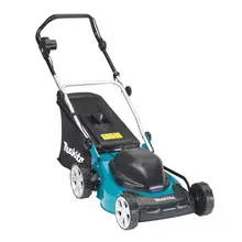 Электрическая газонокосилка Makita – это простая и удобная в использовании техника. Работает от сети 200 В и почти не издает шума, есть также возможность регулировать высоту стрижки, а также ручки, которые можно в последствии сложить. Рекомендуют их использовать на небольших участках, поэтому такой инструмент идеально подходить для частного использования.