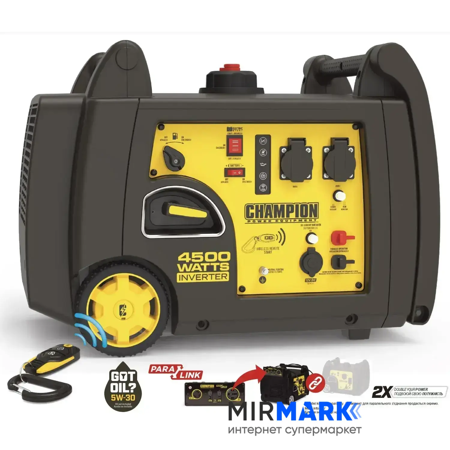 Генератор инверторный Champion C4500iES 4,5 кВт дистанционный запуск, однофазный (230 В), 4.5 кВт