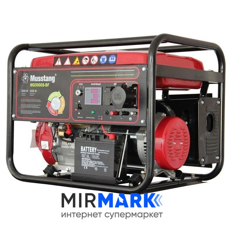Обзор характеристик на Генератор комбинированный (газ/бензин) Musstang MG5000S-BF/32A: