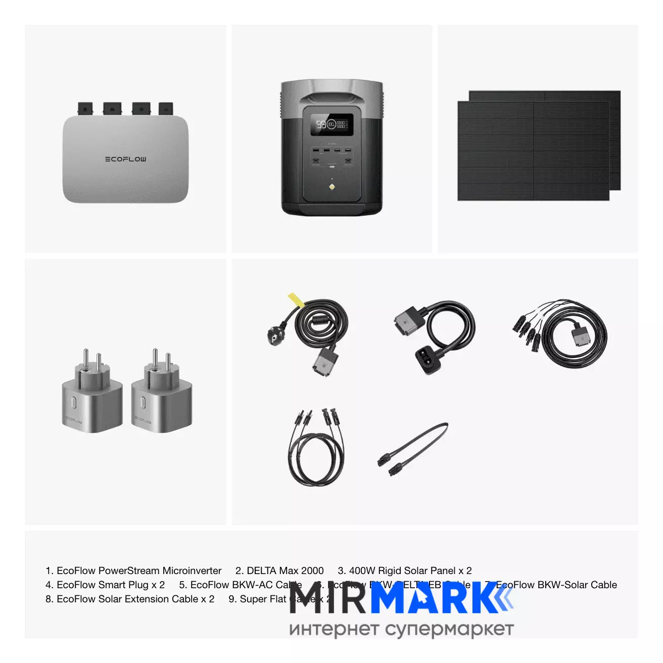 Комплект энергонезависимости EcoFlow PowerStream – микроинвертор 600W + зарядная станция Delta Max 2000 + 2 x 400W стационарные солнечные панели, , 2016Вт/час, Li-Ion (литий-ионный)