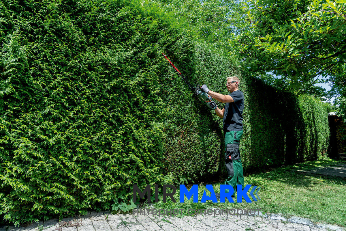 - кусторез для стрижки зарослей и кустов