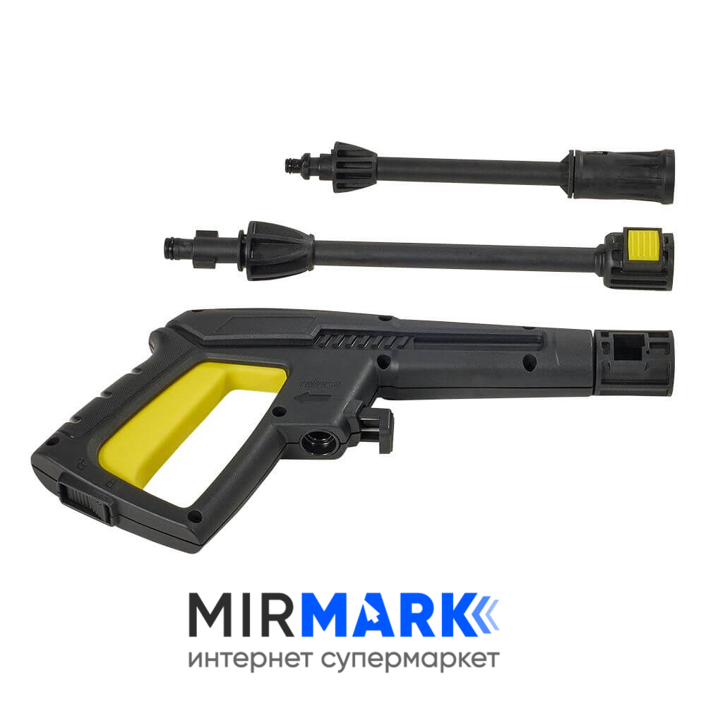 пистолет высокого давления; удлинитель с распылителем; шланг высокого давления (5 м); фильтр-переходник для подключения входного шланга; игла для прочистки форсунок; картонная коробка; инструкция по эксплуатации; гарантийный талон