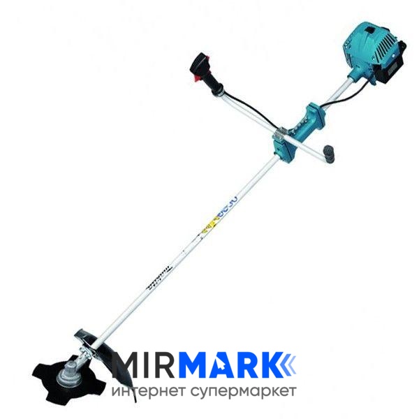 В бензокосе используется 2-тактный двигатель (2,1 л.с.). Бензокоса достаточно мощная что-бы на нужном уровне производить крутящейся момент режущего элемента. Мотор косы экономичен, что хорошо влияет на расход топлива. Заправлять бензокосу нужно бензином, октановое число которого равно не ниже 92. Небольшой топливный бак (1 л.). Транзисторное бесконтактное зажигание используется для легкого запуска двигателя. Прочная штанга, у которой на подшипниках установлен надежный привод. Полный вес мотокосы – 6,7 кг. Безопасность при работе с мотокосой обеспечивает защитный кожух. Производитель т.м. Макита предупреждает, что оператору во время работы с бензокосой нужно надевать на глаза защитные очки.