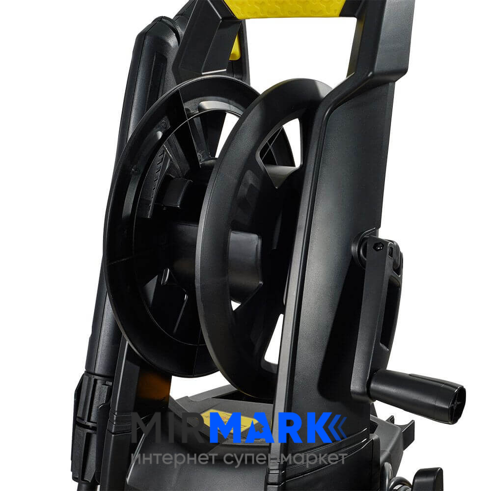 - Минимойка этой модели латвийского производителя имеет высокий показатель мощности — 2.3 кВт. Встроенный компрессор обеспечивает давление в 170 бар, за счет чего достигается производительность в 450 л/ч. Подача потока воды настолько интенсивная, что нет необходимости тратить дополнительные средства на покупку моющих средств. Устройство эффективно и одновременно с этим бережно осуществляет очистку любых поверхностей от пыли, грязи и мусора.