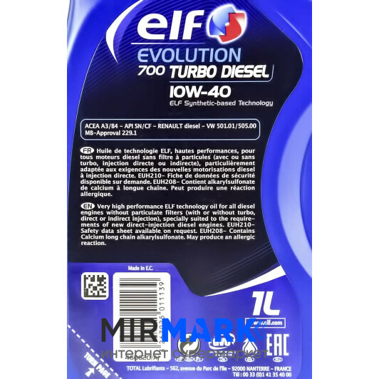 Описание на Масло моторное Elf Evolution 700 Turbo Diesel 10W-40 1л. (216671):