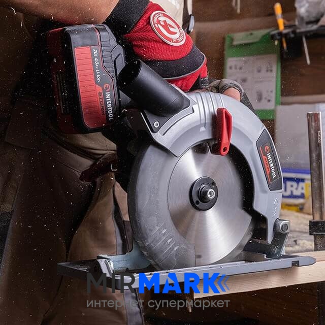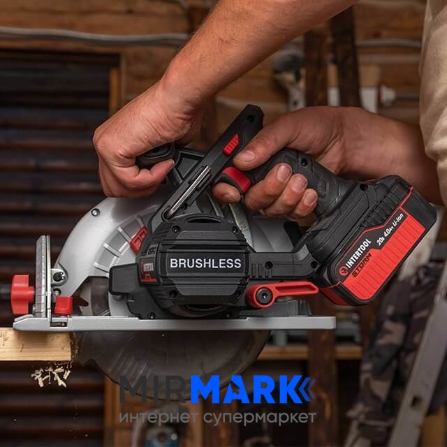 Пила дисковая аккумуляторная Intertool WT-0371 с бесщеточным двигателем 20 В, 4500 об/мин, угол 90'-45', глубина распила 62/45 мм, диск 190мм*20мм, без ЗУ и АКБ