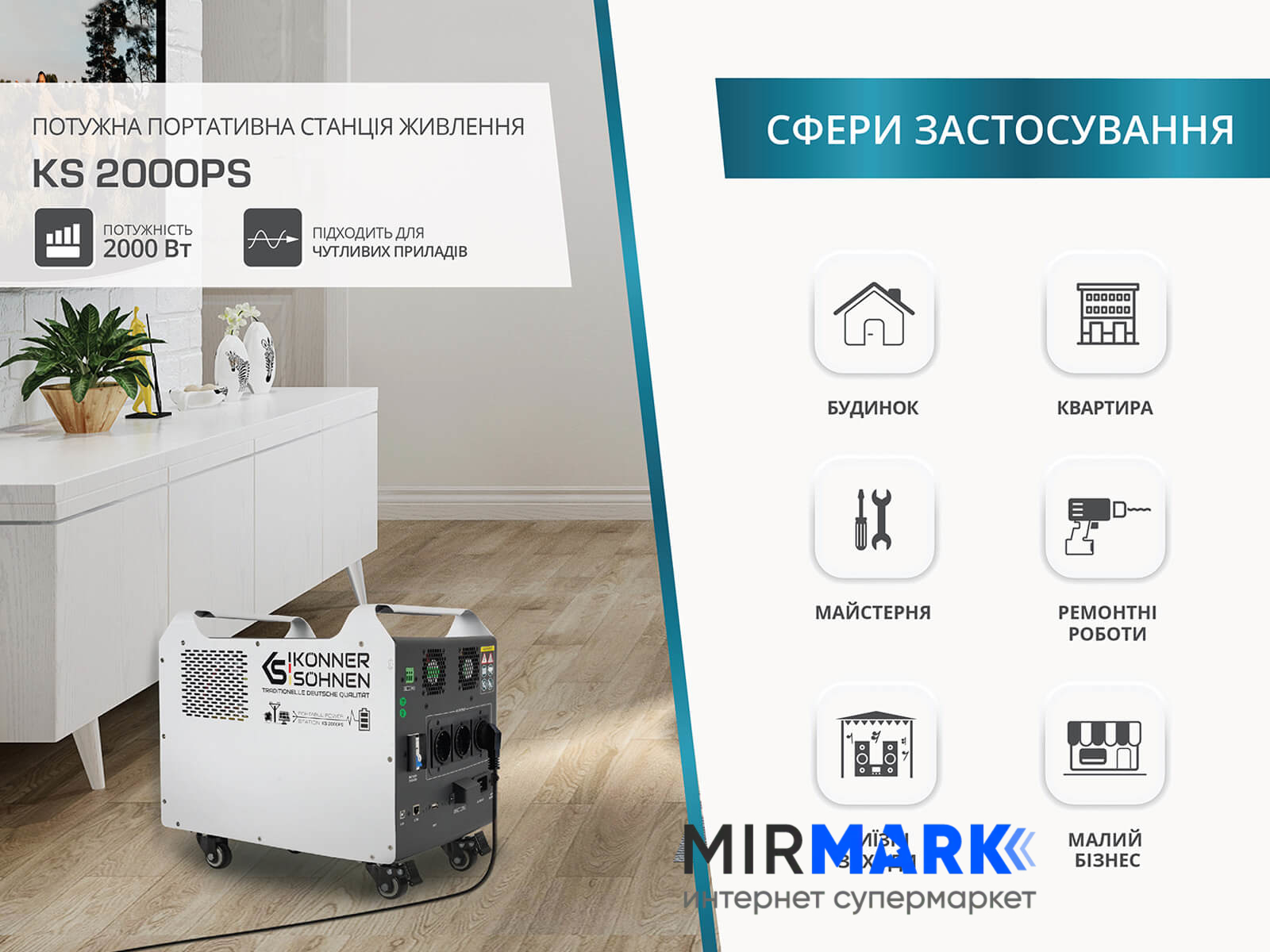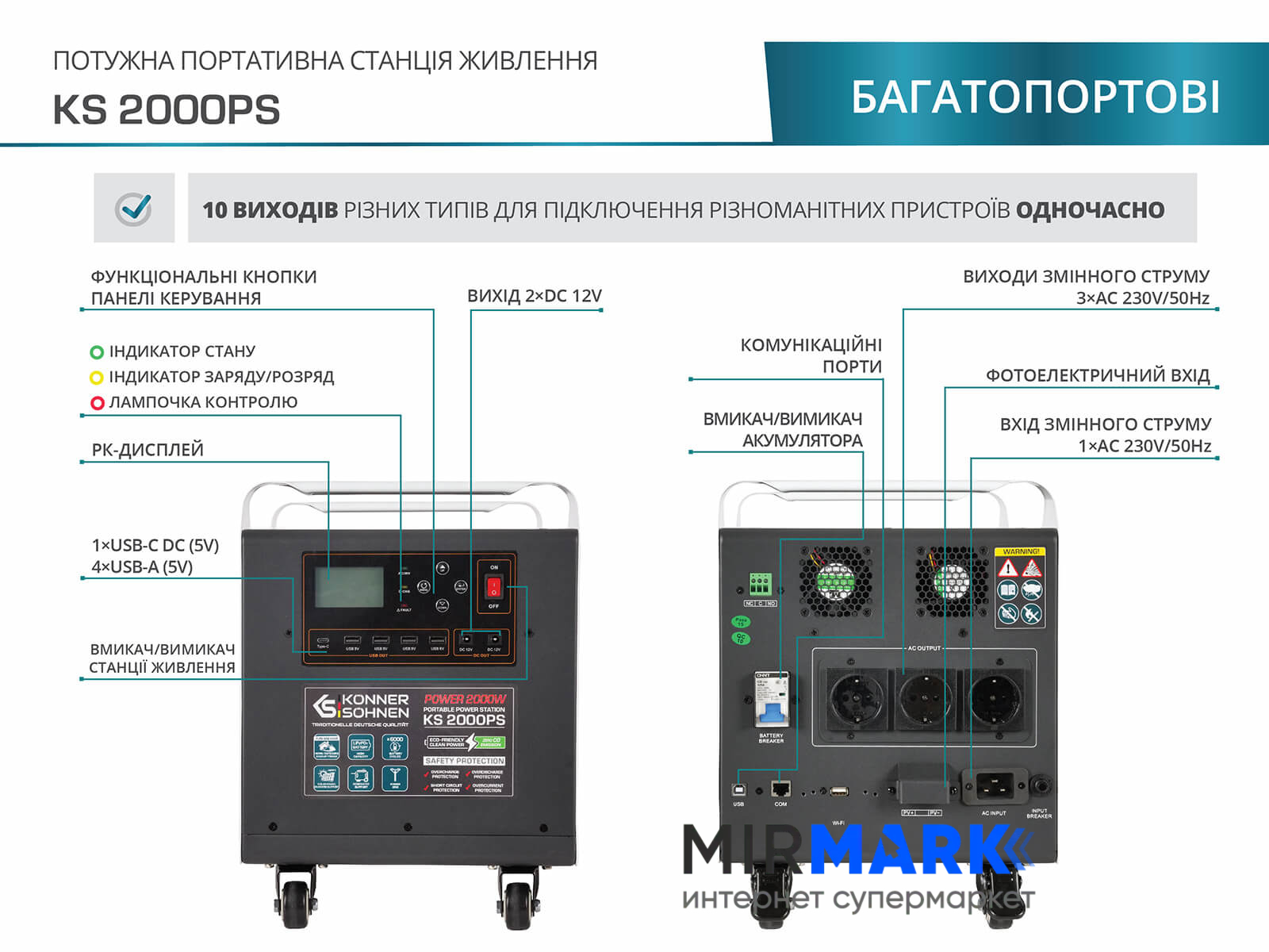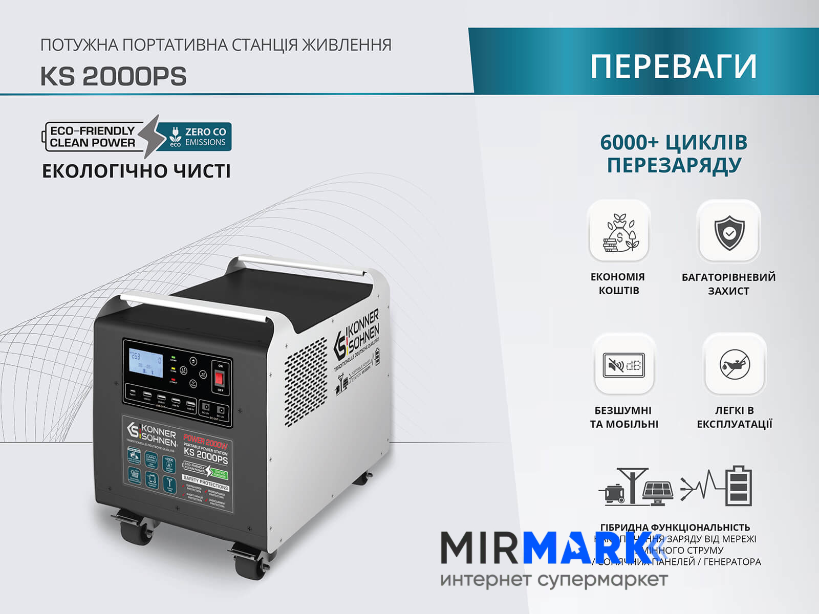 Портативная электростанция Konner&Sohnen KS 2000PS, 2000 Вт, 1792Вт/час, LiFePO4