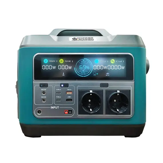 Обзор характеристик на Портативная зарядная станция Konner&Sohnen KS 1200PS-FC, 1200 Вт, 1110Вт/час, Li-Ion (литий-ионный):