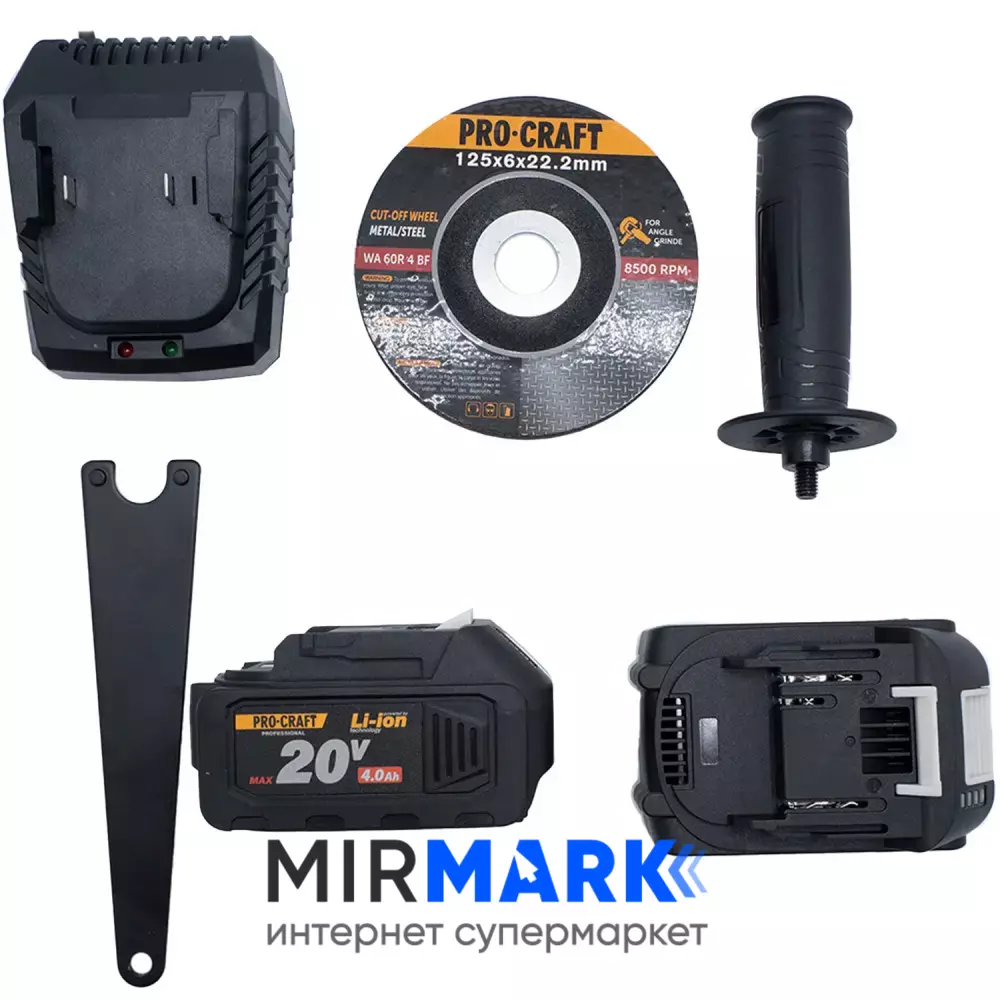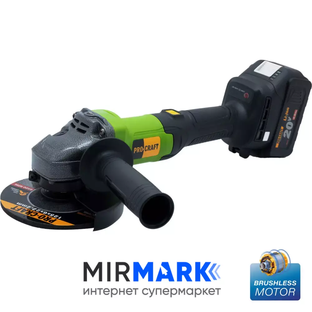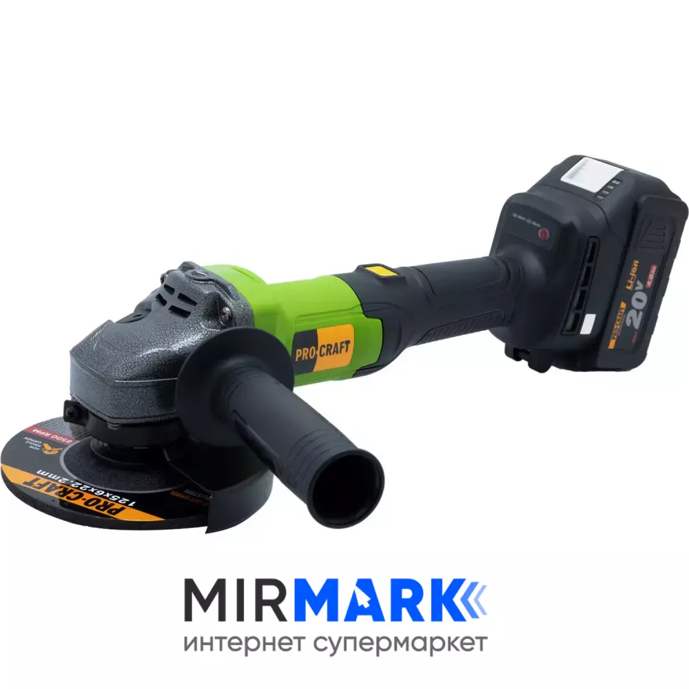 Обзор характеристик на Шлифмашина аккумуляторная ProCraft PGA-20 20В Li-Ion 4.0Ач бесщёточная 125мм 2 скорости 0-3200/7500 об/мин плавный пуск стабилизация и регулировка оборотов с АКБ и ЗУ в комплекте: