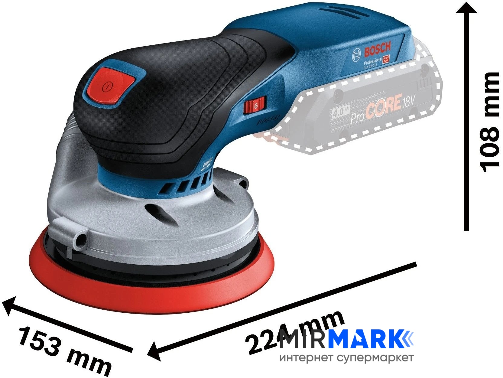 Обзор характеристик на Шліфмашина ексцентрикова акумуляторна Bosch GEX 18V-125 (0.601.372.201):