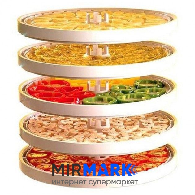 - Температура сушки от 45 до 60 °С. Это позволяет эффективно использовать сушилку для большого количества продуктов;