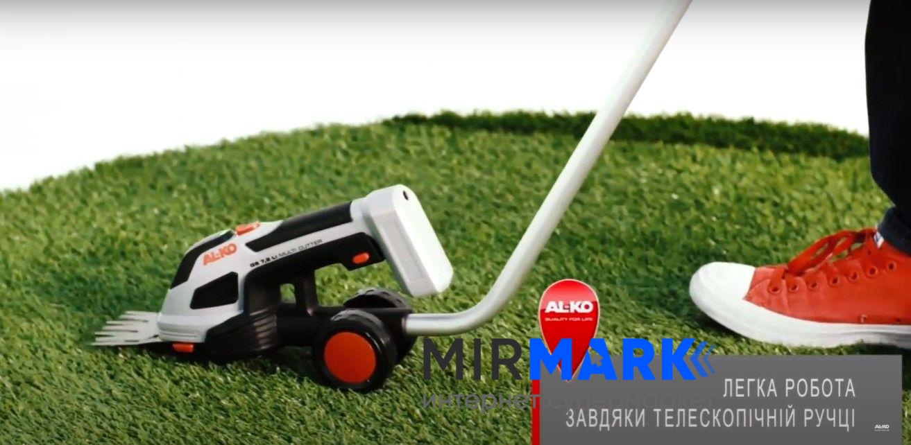 Благодаря телескопической ручке из легкого прочного алюминия Вы сможете подравнивать траву аккумуляторными ножницами AL-KO GS 7,2 Li как триммером - с комфортом и без утомительных наклонов.