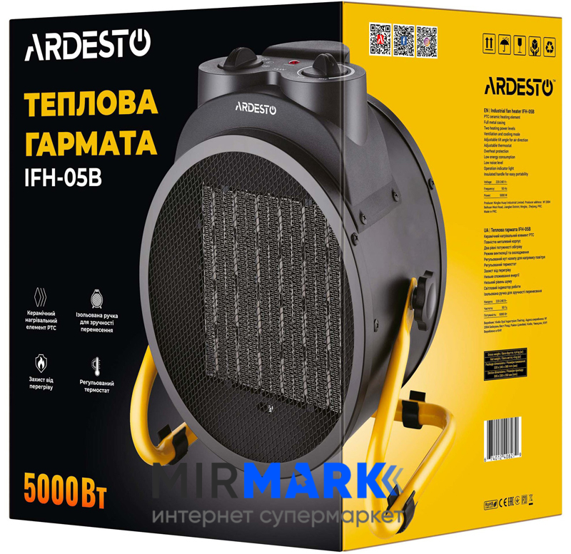 Тепловая пушка электрическая ARDESTO IFH-05B 5 кВт, 50 м2, 470 м3/ч, керамический нагревательный элемент, IP20, механическое управление
