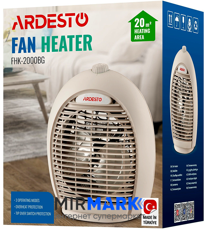 Описание на Тепловентилятор ARDESTO FHK-2000BG, 20м2, 2000Вт, механическое управление, спиральный нагревательный элемент, бежевый: