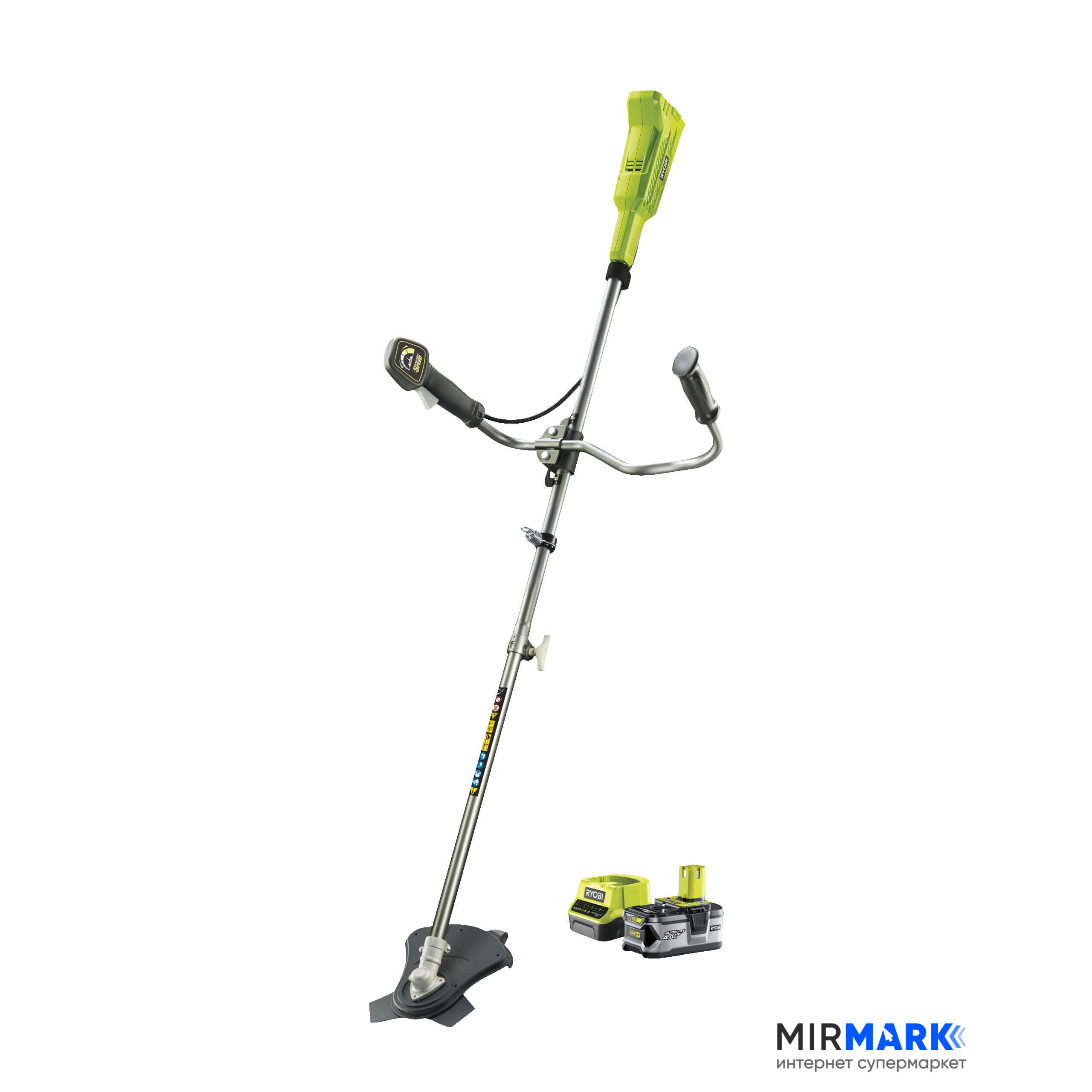 Триммер садовый аккумуляторный Ryobi RBC18X20B4F, ONE+ 18В, 1х4Ач, 30см(леска)/20см(диск), 4.7 кг, велосипедная рукоять, ремни Vertebrae
