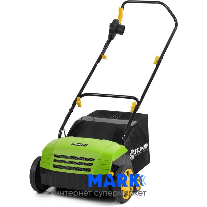 Аератор FZV4001-E ТМ Fieldmann оснащений електромотором потужністю в 1,3 кВт. Компанією-виробником заявлена робоча ширина пристрою 32 см, але надійна конструкція дозволяє справлятися і з більш значними навантаженнями. Ручка складна. Спеціальна накладка обумовлює високу комфортність при використанні. Прилад обладнаний 2 видами робочих інструментів: скарифікатором і аератором. Заміна робочих циліндрів виконується дуже просто і швидко. Спеціальний важіль регулює робочу глибину. Положення пружин варіюється від -90 до +30 мм. Останній варіант застосовується при перевезенні інструмента. Рекомендовано використовувати аератор на ділянках до 1 тис. м2. У комплект також входить місткий 40-літровий мішок для збирання трави, виготовлений з міцного текстилю.