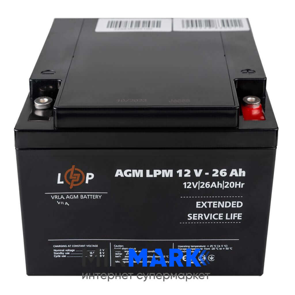 Опис на Акумулятор AGM LogicPower LPM 12V 26Ah болт М5: