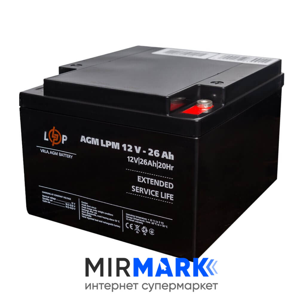Огляд характеристик на Акумулятор AGM LogicPower LPM 12V 26Ah болт М5:
