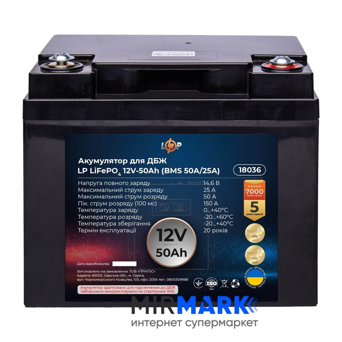 Огляд характеристик на Акумулятор для ДБЖ LogicPower LiFePO4 12V-50 Ah BMS 50A/25A (LP18036):