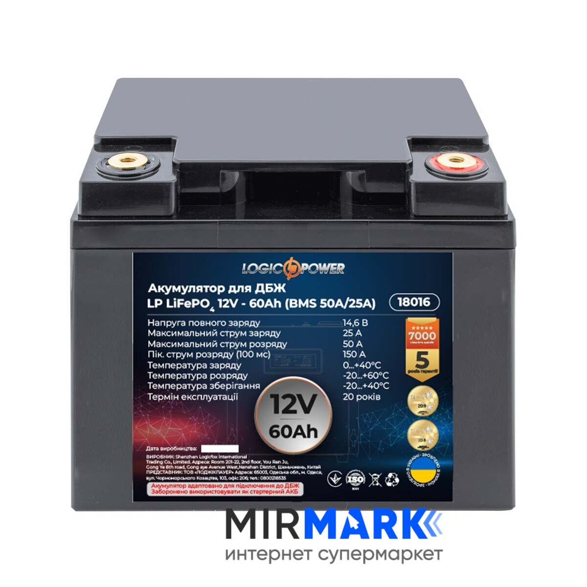 Огляд характеристик на Акумулятор для ДБЖ LogicPower LiFePO4 12V-60 Ah BMS 50A/25А (LP18016):