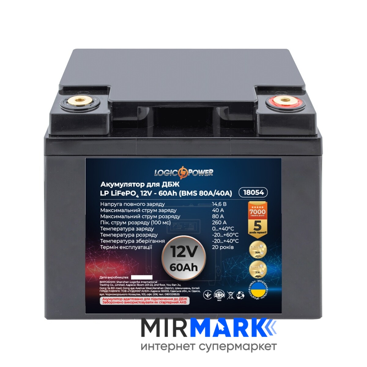 Огляд характеристик на Акумулятор для ДБЖ LogicPower LiFePO4 12V-60 Ah BMS 80A/40А (LP18054):