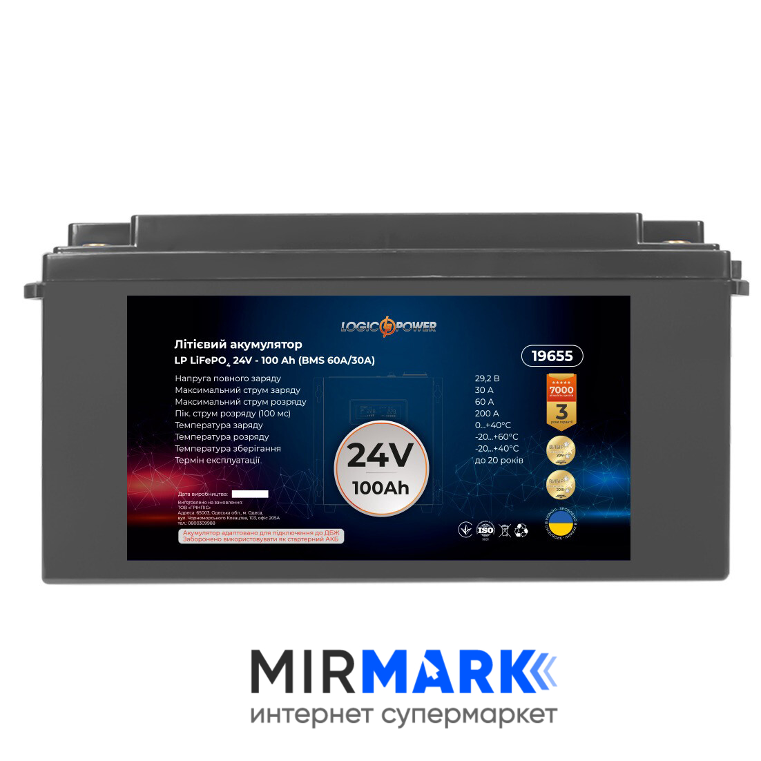 Опис на Акумулятор для ДБЖ LogicPower LiFePO4 24V-100 Ah BMS 60A/30А (LP19655):