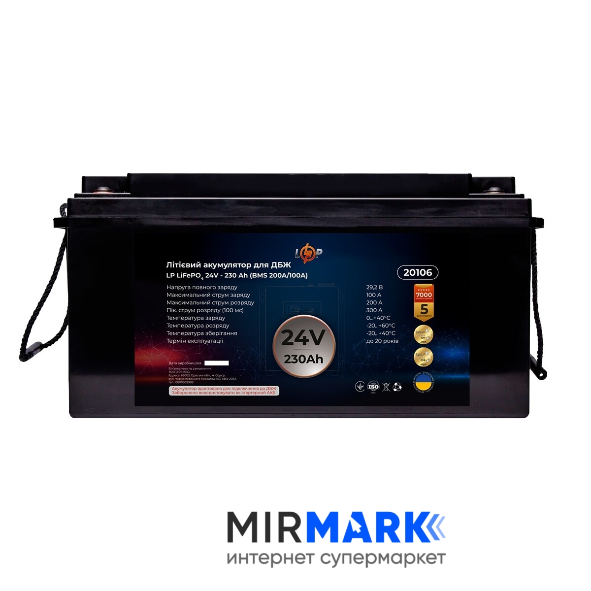 Опис на Акумулятор для ДБЖ LogicPower LiFePO4 24V-230 Ah BMS 200A/100A (LP20106):