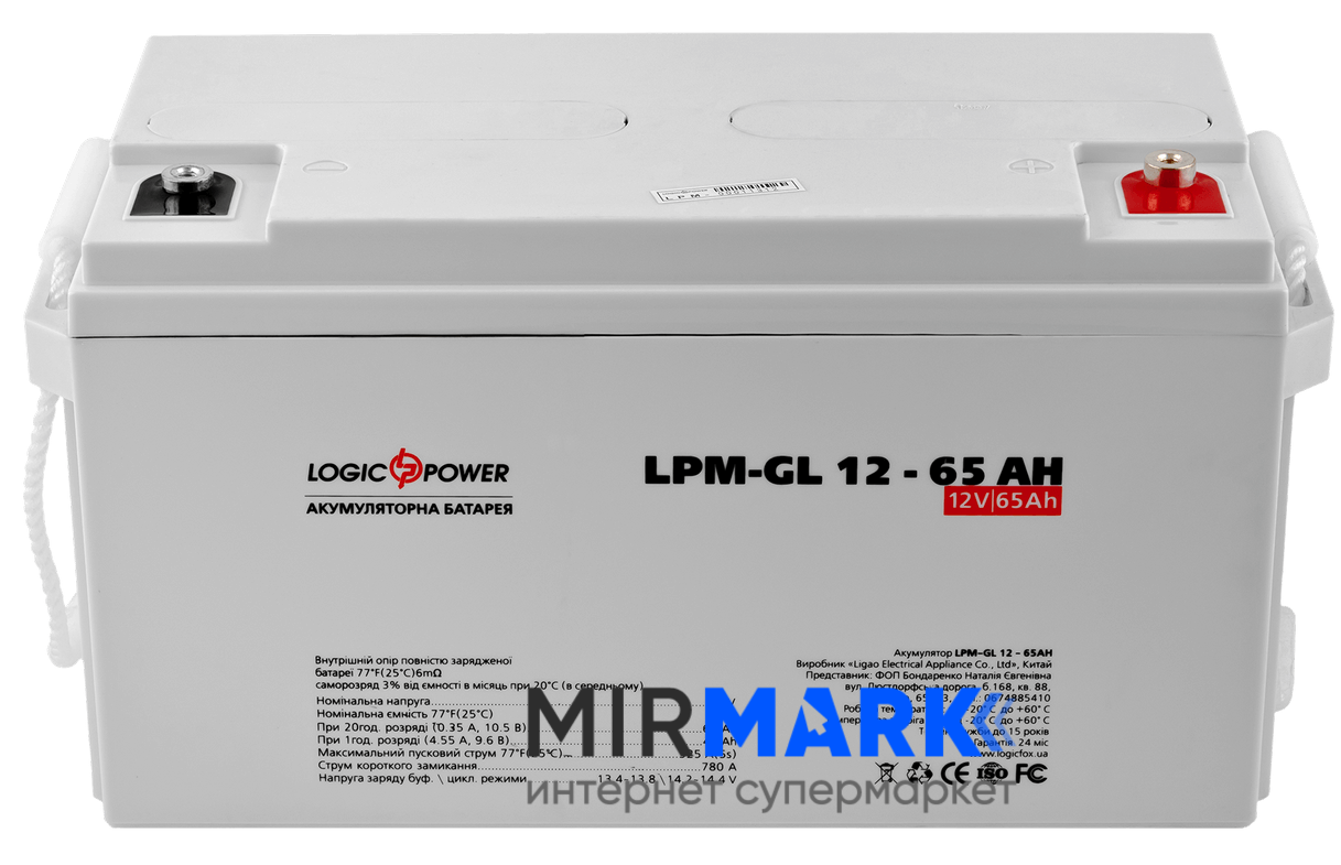 Опис на Акумулятор гелевий Logicpower LPM-GL 12 - 65 AH: