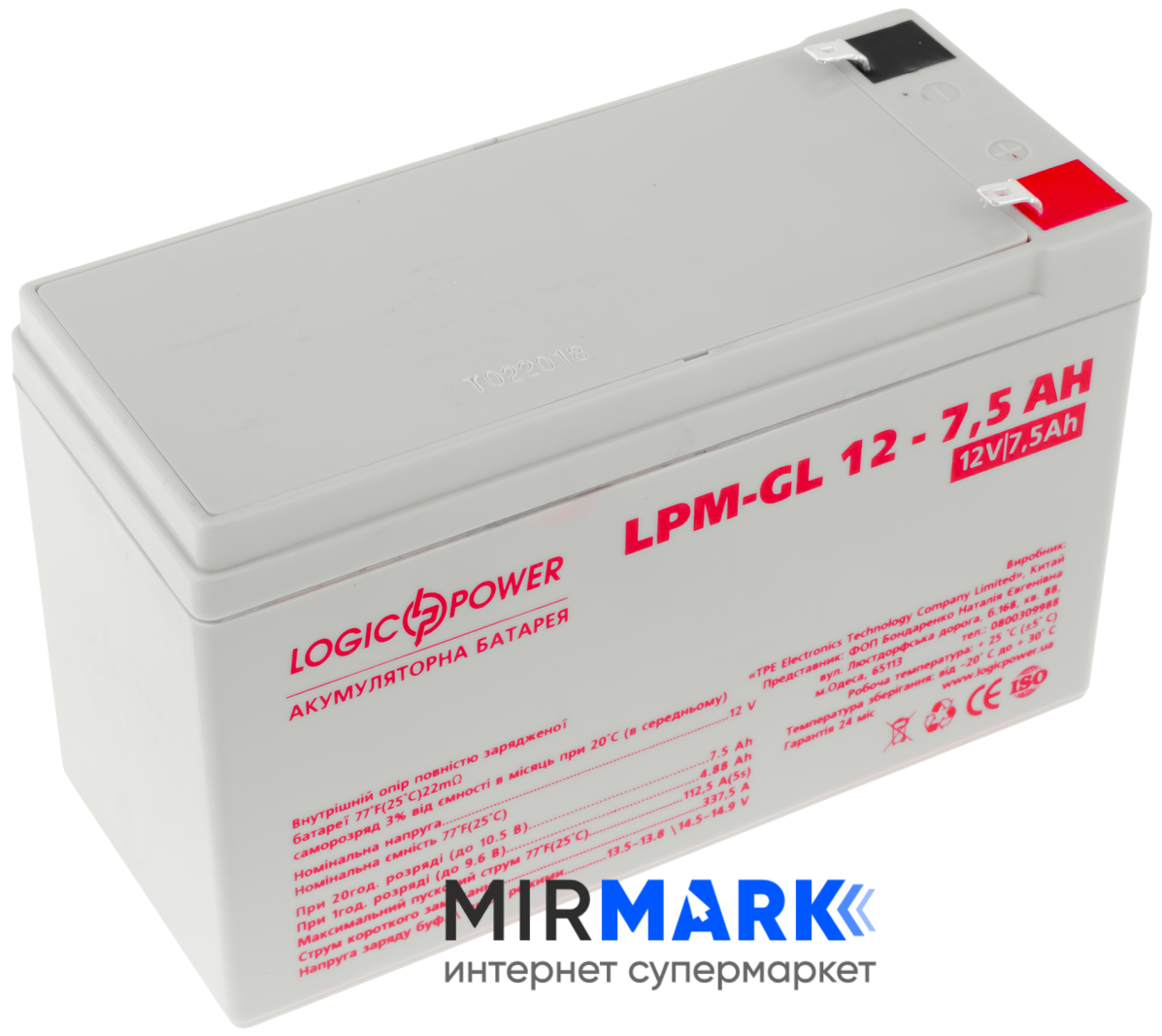Акумулятор гелевий Logicpower LPM-GL 12 - 7,5 AH