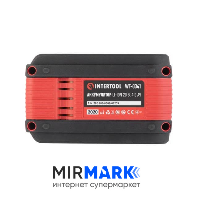 Огляд характеристик на Акумулятор Intertool WT-0341 20 В, літій-іон, 4.0 Ач, індикатор рівня заряду: