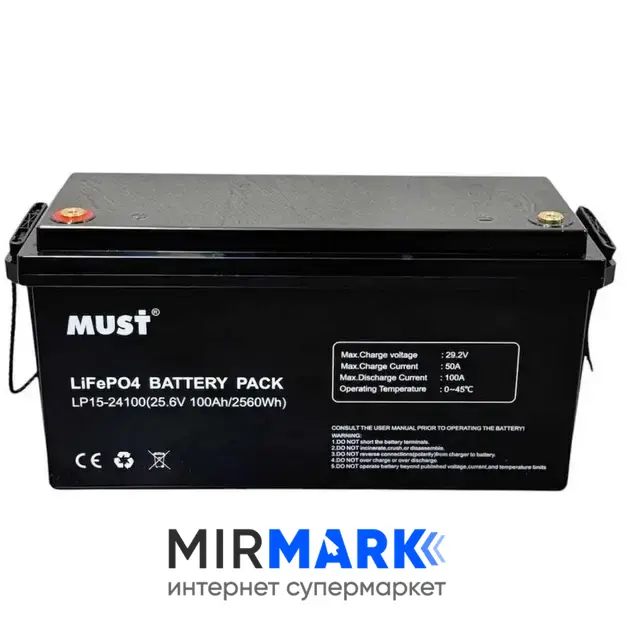 Опис на Акумулятор Must BMS 50A 25.6V 100Ah 2.56kWh: