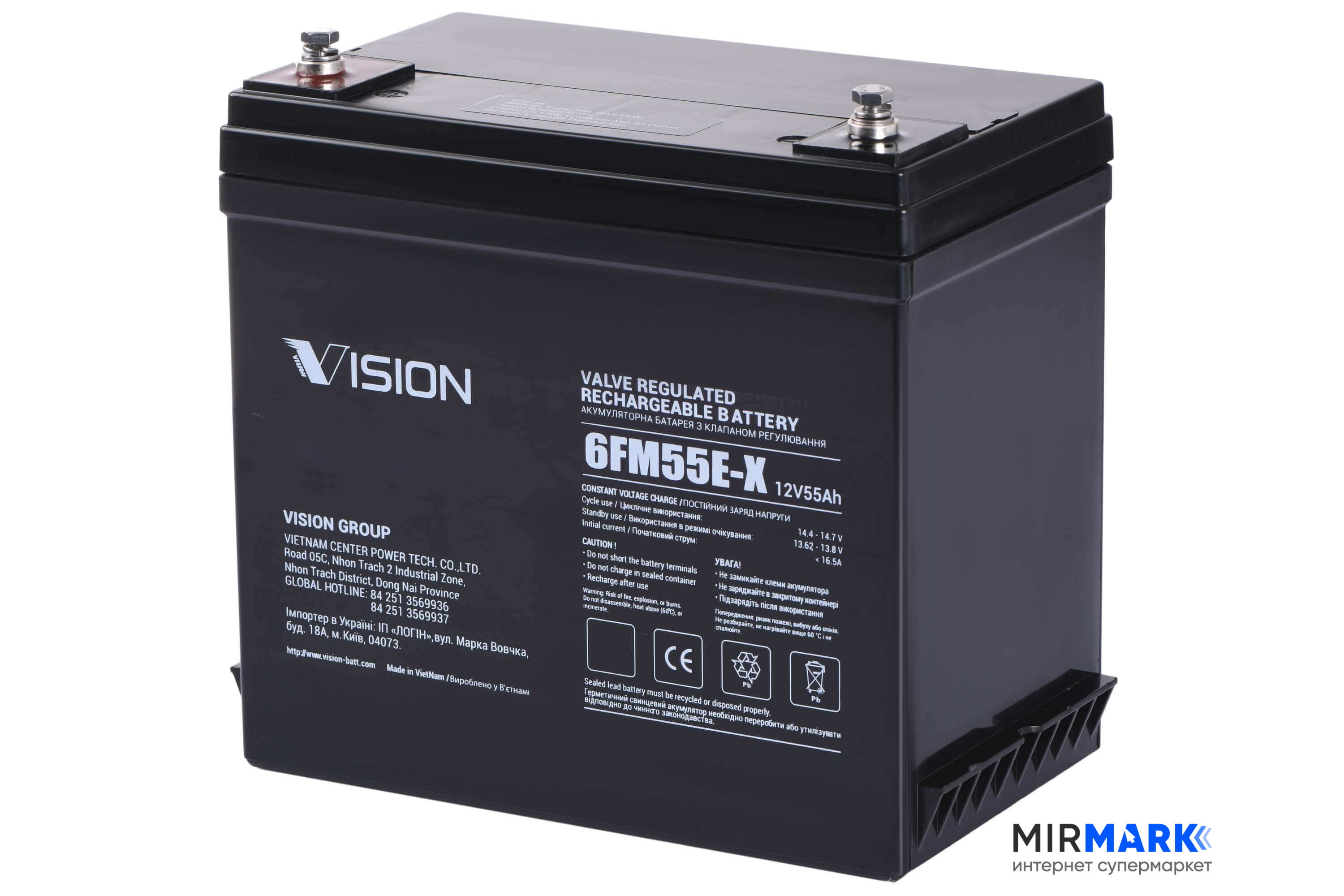Огляд характеристик на Акумуляторна батарея Vision FM, 12V, 55Ah, AGM: