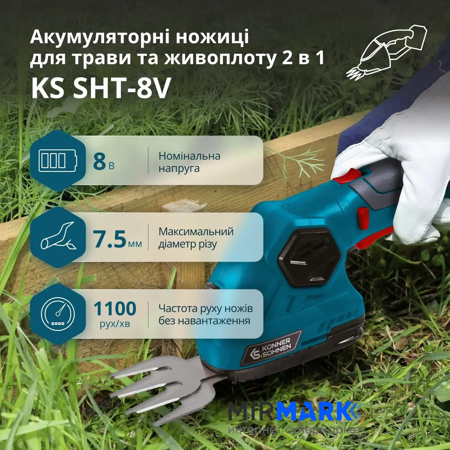 Огляд характеристик на Акумуляторні ножиці для трави та живоплоту Könner&Söhnen KS SHT‑8V без АКБ та ЗП: