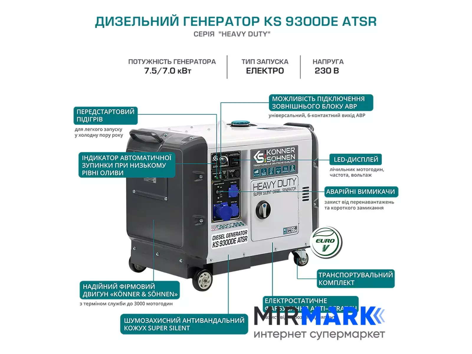 Опис на Дизельний генератор Konner&Sohnen KS 9300DE ATSR:
