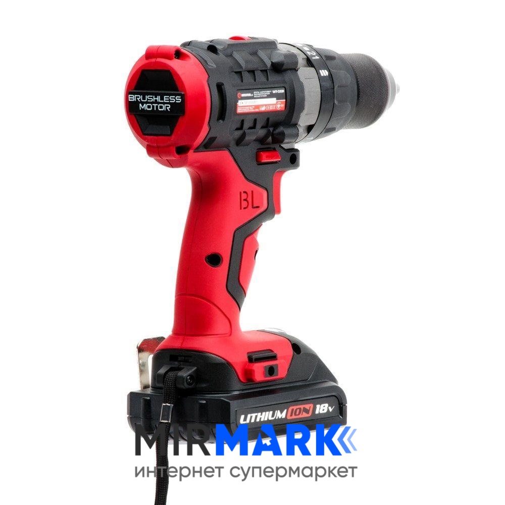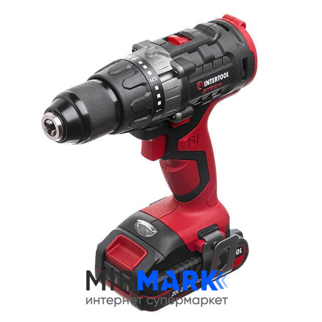 Опис на Дриль-шурупокрут акумуляторний INTERTOOL WT-0331 з безщітковим двигуном 20 В, 50 Nm, 0-400/0-1500 об/хв, 1,5-13 мм, літій-іон, 2x2.0 Ач, ЗП, кейс: