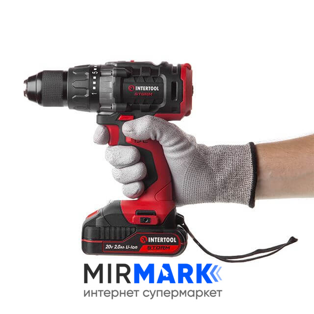 Огляд характеристик на Дриль-шурупокрут акумуляторний INTERTOOL WT-0331 з безщітковим двигуном 20 В, 50 Nm, 0-400/0-1500 об/хв, 1,5-13 мм, літій-іон, 2x2.0 Ач, ЗП, кейс: