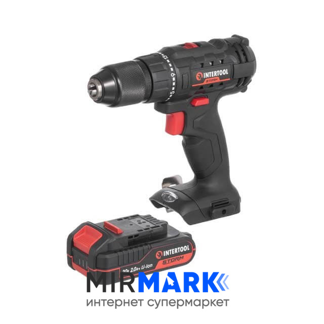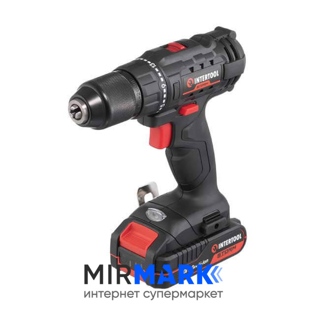 Опис на Дриль-шурупокрут акумуляторний INTERTOOL WT-0350 20 В, 35 Nm, 0-450/0-1500 об/хв, 2-13 мм, літій-іон, 2.0 Ач, ЗП 2А, кейс: